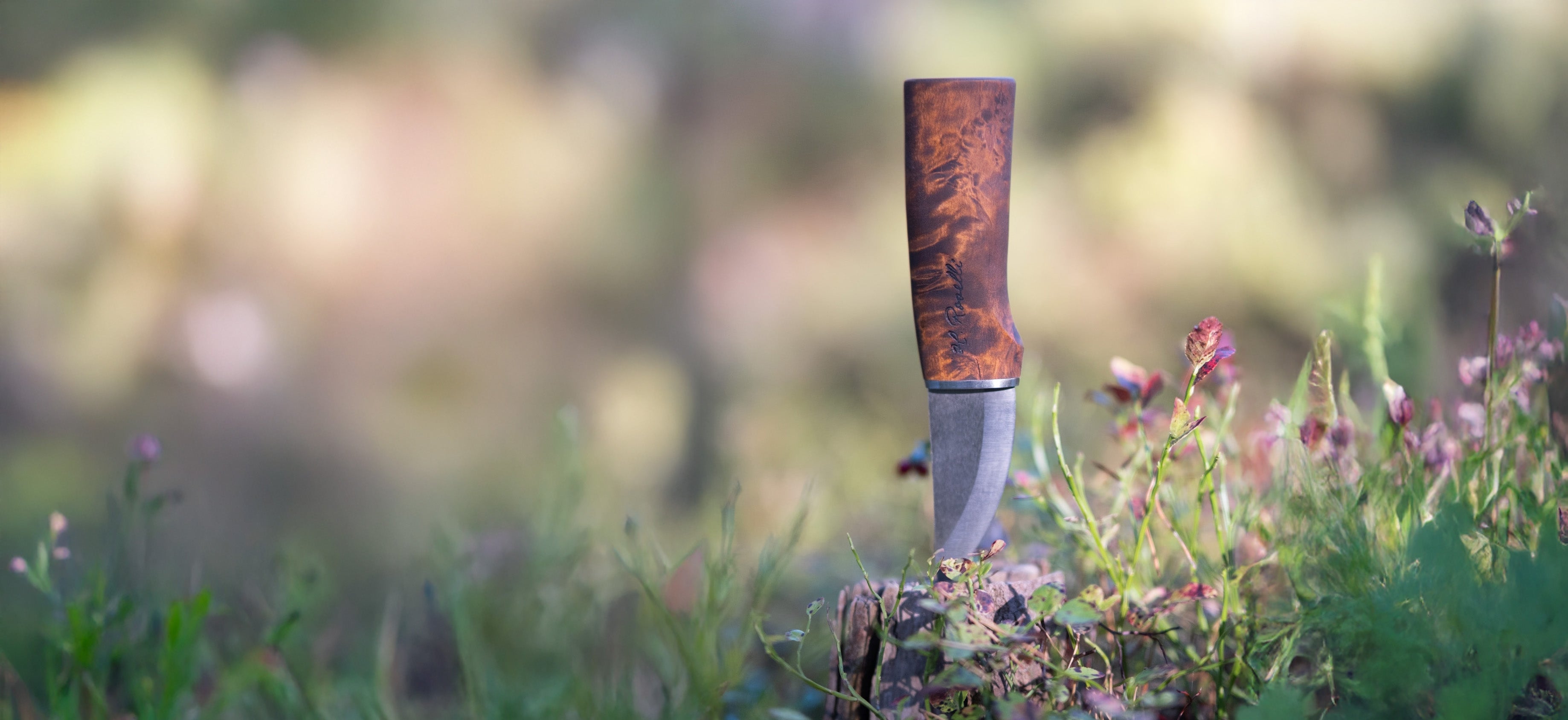 We work with the finest natural materials Finland has to offer: curly birch, vegetable-tanned leather, and our renowned high carbon steels, including our own Ultra High Carbon (UHC) steel known for exceptional edge retention.