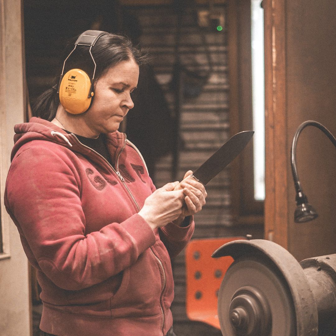 Since joining Roselli in August 2020, Rea has played a vital role in our leather department. She meticulously crafts all our sheaths and leather accessories by hand, ensuring they match the quality of our blades.