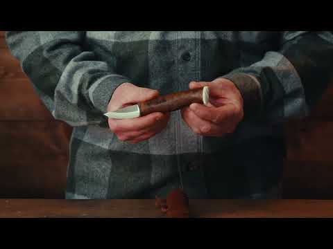 The blade is made from UHC steel (Ultra High Carbon) and the reindeer antler decorated handle is curly birch, stained, and coated with linseed oil, which ensure a firm grip, even when wet. Comes with a handcrafted sheath of dark vegetable tanned Finnish leather in combination with stained curly birch for a unique look. Crafted, sharpened and perfected in collaboration with knife maker Kari Ohtonen.