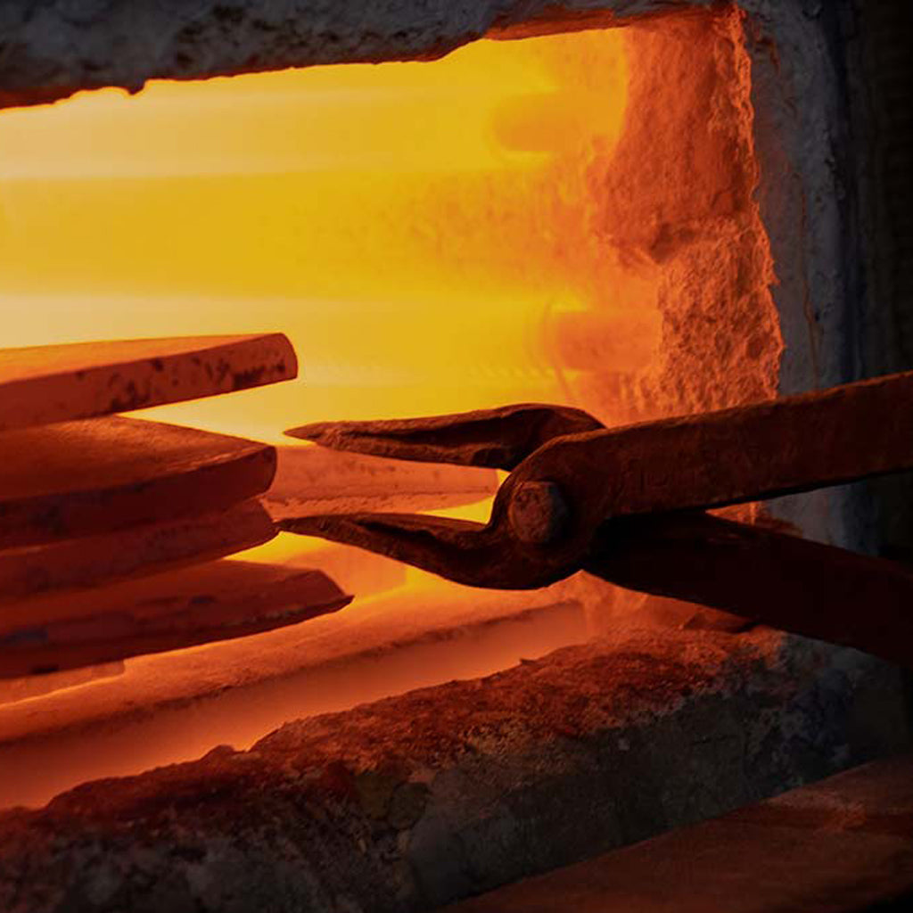 Quando si tenta di ottenere un'estrema durezza nell'acciaio per coltelli, è molto probabile che il metallo diventi fragile, il che porta alla frantumazione. Heimo Roselli ha escogitato una perfetta combinazione di indurimento e tempra, producendo un coltello estremamente affilato pur rimanendo flessibile.Tutto ciò è avvenuto grazie ad anni di lavoro intensi e non per pura fortuna. Ha scoperto la miscela definitiva di acciaio grezzo e carbonio, che attraversa il ciclo perfetto di riscaldamento e raffreddamento, riducendo l'anima metallica a una massa densa di pura potenza. A questa sottile billetta viene quindi lentamente data la forma di una lama, prima di essere affilata alla sua massima capacità. Tutto a mano.